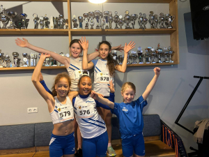 En Elynn en Maya, die gingen zelfs met precies hetzelfde aantal punten naar huis. Dat was Chris en Aiden bij de U10 eerder op de dag ook al gelukt, maar dan op een podiumplek. Allebei een medaille dus. Zo gingen we uiteindelijk met 3 clubrecords, 5 medailles en een karrenvracht aan persoonlijke records naar huis. Een mooie, lange, ontspannen en toch spannende dag om trots op terug te kijken. De volgende indoorwedstrijd is op 15 maart, maar eerst de crosscompetitie op 17 januari. Doen jullie weer mee? De inschrijflijsten hangen op het pupillenbord.